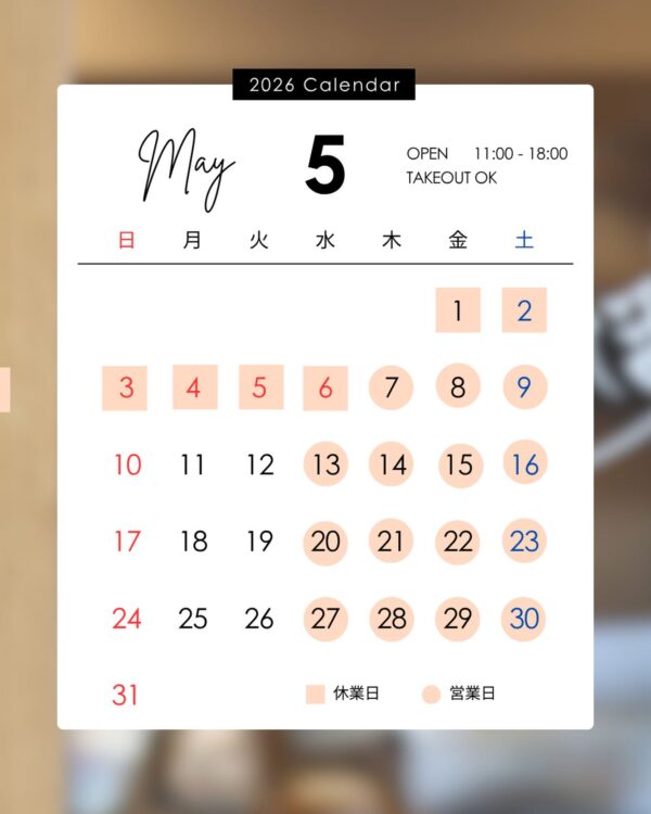 ※万が一、急遽臨時休業となる場合は、Instagramにてお知らせいたしますので、ご確認のほどよろしくお願いいたします。